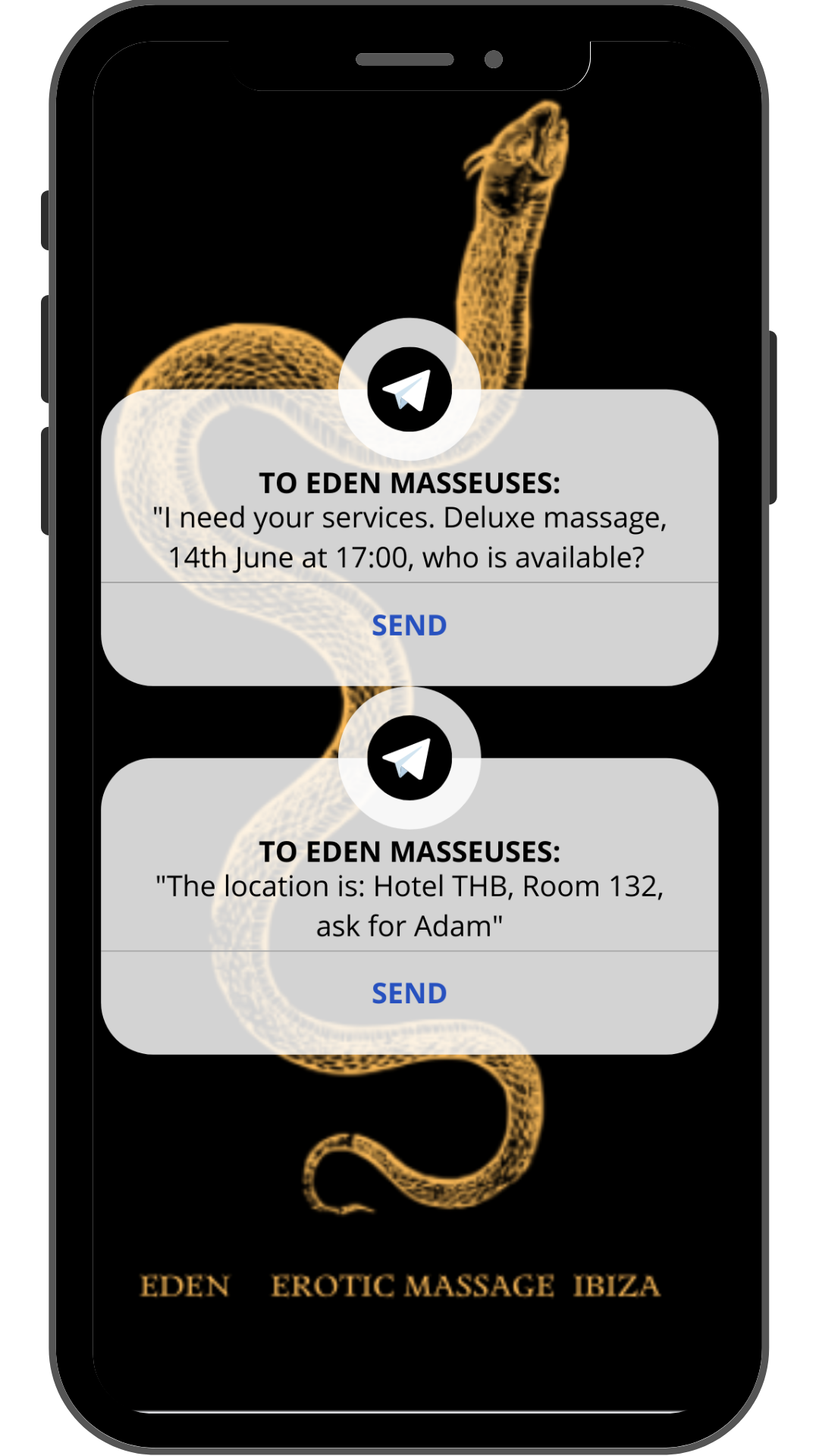 Provide the details about your appointment for your Erotic massage in Ibiza.